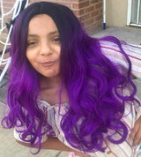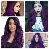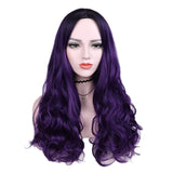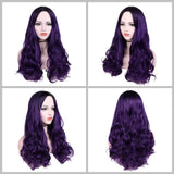 Black to Violet Purple Ombre Middle Parting Long Natural Curly Human Hair Look and Feel Heat Friendly Non Shedding Top Quality Synthetic Wig