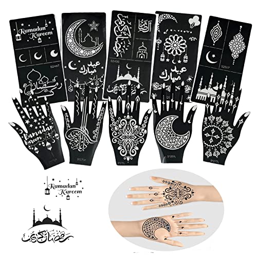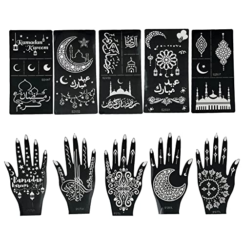 Details: The Henna Tattoo Kit is Perfect for creating a Ramadan atmosphere. The tattoo template is made of soft polyvinyl chloride, durable. If you use them carefully enough, they can be reused several times. Removable tattoo stickers come in different sizes. It is very convenient to use and keep after use. HOW TO USE: 1. Carefully remove the white backing paper from the stencil. 2. You can cut the stencil into small parts to apply on your skin. 3. Apply the stencil to the skin, adhesive side down. 4. Slowly peel back the clear protective sheet. 5. Apply henna body paint to the skin showing through the stencil. 6. Let dry according to paint instructions. 7. Once henna is completely dry, rub off excess paint and remove the stencil. 8. Reduced contact with water can make the pattern last longer. 9. Use the stencils also for Glitter Tattoo and Air Brush Tattoo. Add glitter or other colors with a paintbrush for a special effect. Please use a towel or cloth to clean the debris on the skin, do not use water. Note: Not for use on the sensitive skin around eyes or lips, or with young children.