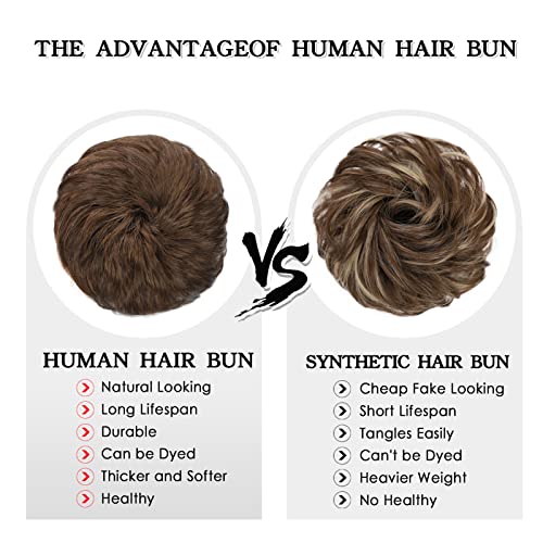100% Human Hair Bun, Messy Bun Hair Piece Human Hair Messy Curly Hair Bun Hair Pieces for Women Hair Buns Hair Piece Light Brown