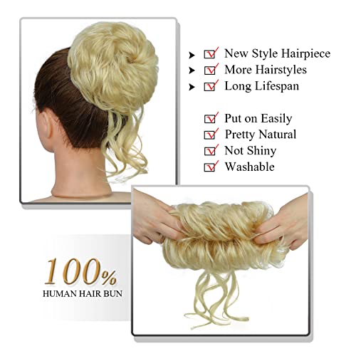 100% Human Messy Hair Bun Scrunchies Ponytail Extension Human Hair Tousled Updo Chignon Hair Piece (613# Blonde)