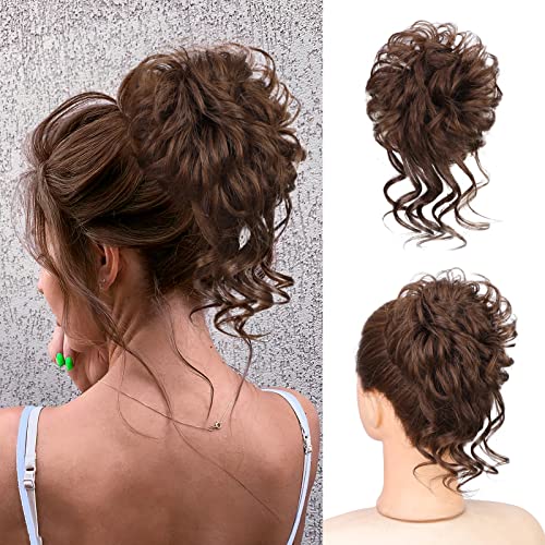 100% Human Messy Hair Bun Scrunchies Ponytail Extension Human Hair Tousled Updo Chignon Hair Piece (Light Brown)