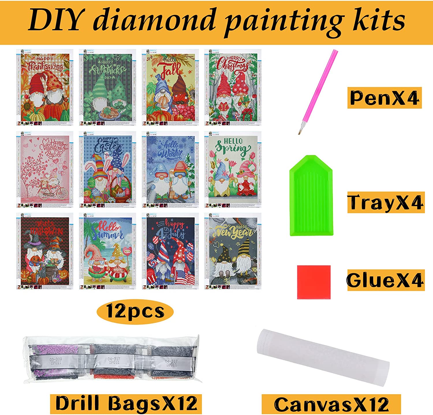 12 Pieces DIY Diamond Art Kits 5D Gnome Diamond Painting Kits for Adults Diamond Dots Paintings for Kid Parents Children Beginners, 12 x 16 Inch