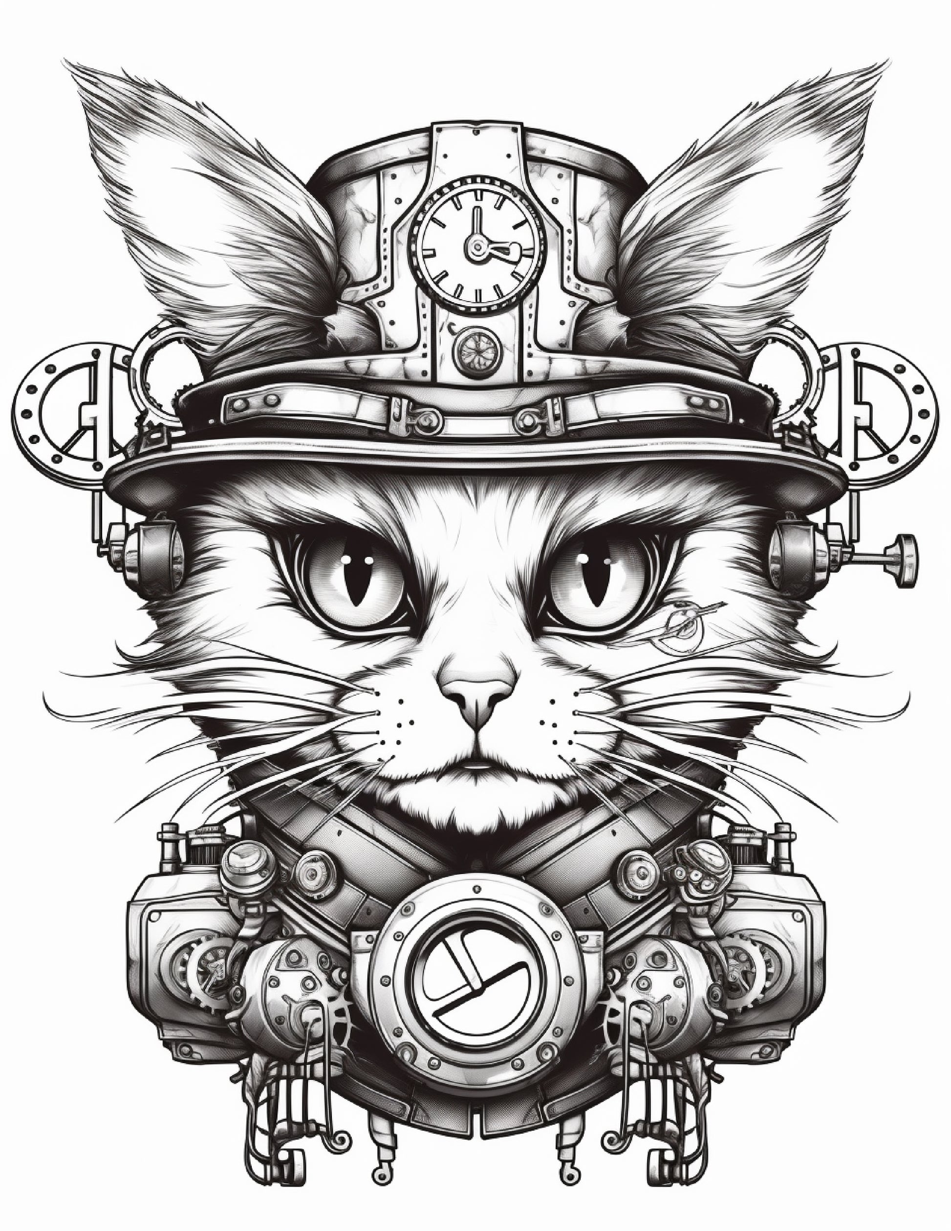 Welcome to our collection of 210+ Steampunk Cat Coloring Pages, designed especially for adults who love the whimsical world of steampunk art.