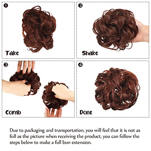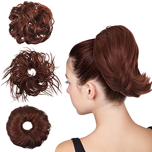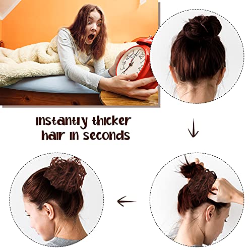 3 Pieces Synthetic Bun Hairpiece Scrunchies Hair Bun Extensions Messy Curly Hair Scrunchies Hairpieces Synthetic Donut Updo Hair Pieces Synthetic Chignon with Elastic Rubber Band (Dark Brown)