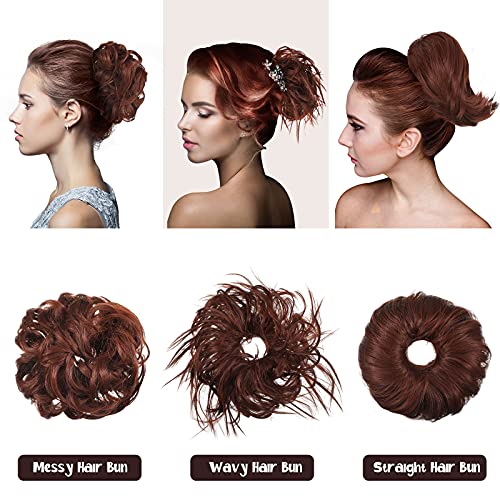 Soft material: messy hair bun is made of quality heat-resistant synthetic fiber, which looks and feels like natural hair, can blend seamlessly with the texture of your own hair, with an invisible elastic headband, can be placed on your ponytail to increase the volume and fullness of the bun or ponytail