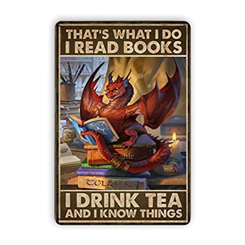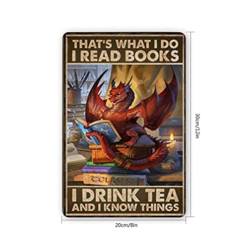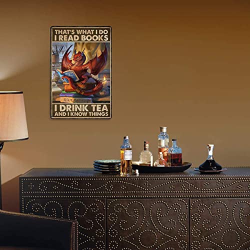 Dragon Lover I read Books I drink Tea and I know Things 12"x8" Inch Metal Tin Sign Retro Vintage Art Home Wall Decor