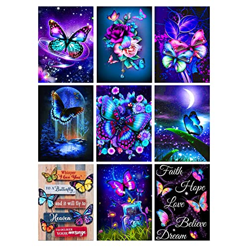 Butterfly Diamond Art, 9 Pack 5D Diamond Painting Kits for Adults Diamond Dotz Crafts Kits for Home Wall Decor 11.8 X 15.75 in