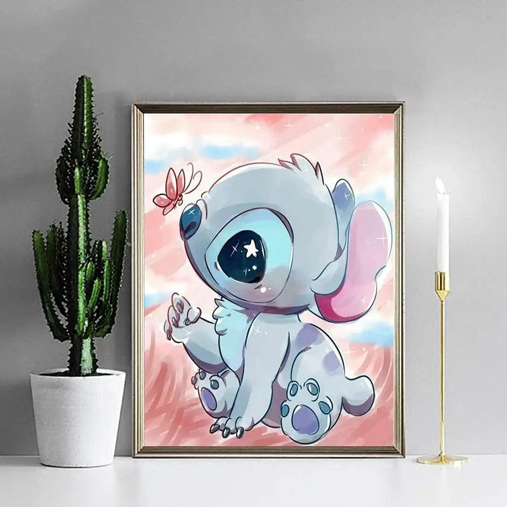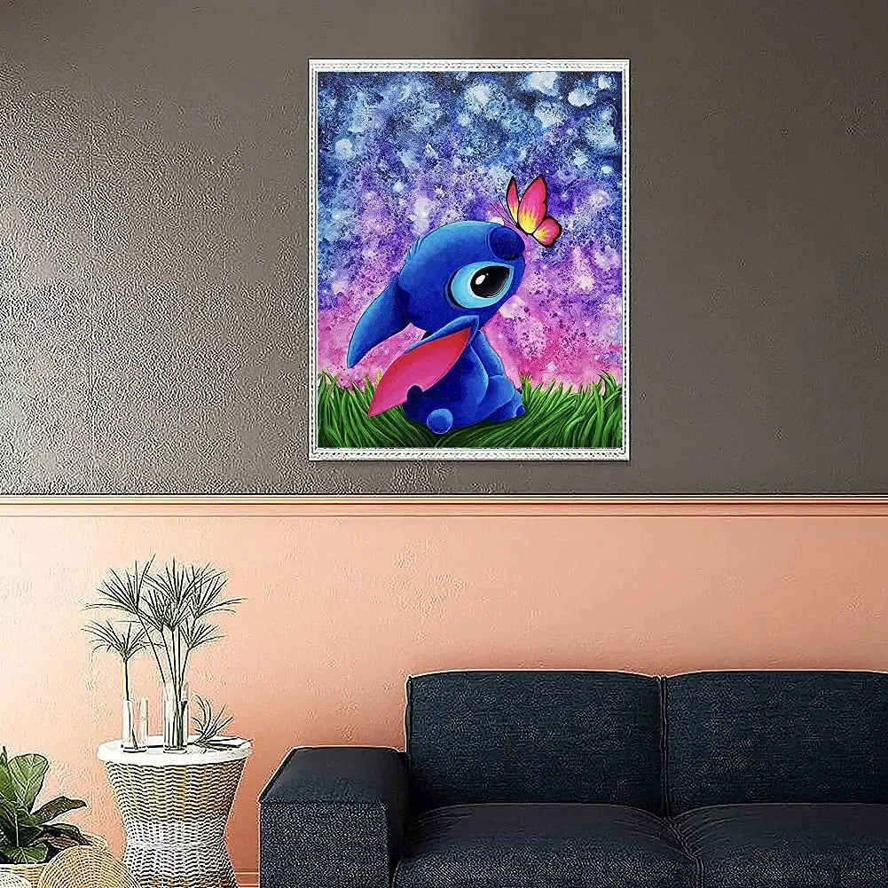 Stitch Diamond Painting Kits for Adults and Kids Canvas size : 12 x 16 inch / 30X40cm Package includes: Canvas, Diamonds, Tools (The frame is not included) DIY Diamond painting production steps: 1. Take out the diamond kits and check them are complete. 2. View the diamond color, arranged in order of coding. 3. Uncover part of the protective film on canvas, apply a proper amount of diamond adhesive to the pen, stick the corresponding diamond. 4. According to the corresponding color code stick the diamond onto the corresponding canvas. 5. When completed, use a heavy book or your hand to press the diamonds to ensure it's strength.
