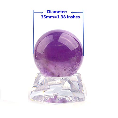 Jovivi 35mm Natural Amethyst Healing Crystal Gemstone Ball Divination Sphere Sculpture Figurine with Acrylic Stand Feng Shui Chakra Aura Home Desk Decor