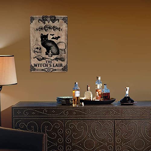 Black Cat The Witch's Lair | Black Cat Lover Gift | Kitchen Decor Bar Bathroom Garden Home Outdoor Decoration | Metal Tin Signs 8 x 12 Inch