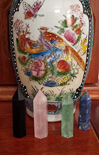 Details: Pink Rose Quartz brings the energies of love, tranquility and harmony. Black Obsidian is a strongly protective stone and Powerful cleanser for negativity. Lapis lazuli is blue rocks,mottled with white calcite and brassy pyrite.A stones for coordinating body, emotional spirit and spirituality.Green fluorite is the crystal that can help you reduce negative emotions, to calm and relieve anxiety, tension, and stress by detoxifying the emotional body. As a combination all crystals, they're used for mantain balance and create inner peace Specifications: Size:about 2” Package:4pcs included Lapis Lazuli,Rose Quartz,Green Fluorite and Black Obsidian with gift box and random gift Raw stones may have flaws,but no worries.Every stone and crystal are hand picked to guarantee purity of crystals. Note: Please expect variations in wands size, shape, color,and crystal transparency.