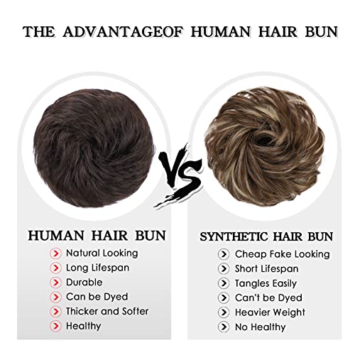 Messy Bun Thick 100% Human Hair Scrunchie for Women, young Adults, Teen and Pre-Teen Girls Curly Wavy Messy Bun Juva Bun Extensions for Thin Hair Synthetic Chignon Hairpiece Updo Donut Chignons Cat Ear Buns