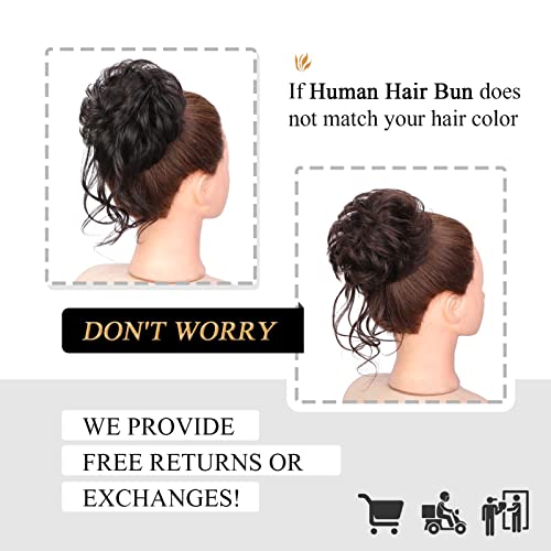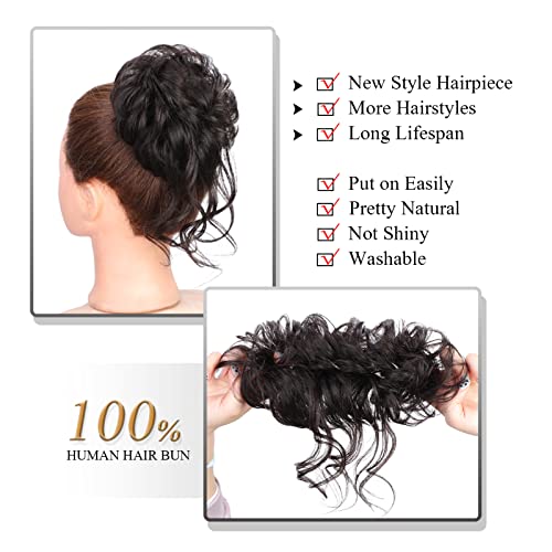 100% Human Messy Hair Bun Scrunchies Ponytail Extension Human Hair Tousled Updo Chignon Hair Piece Black Brown