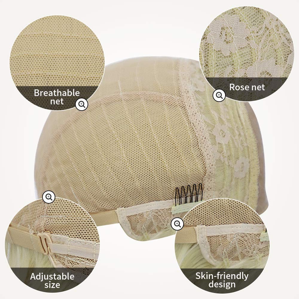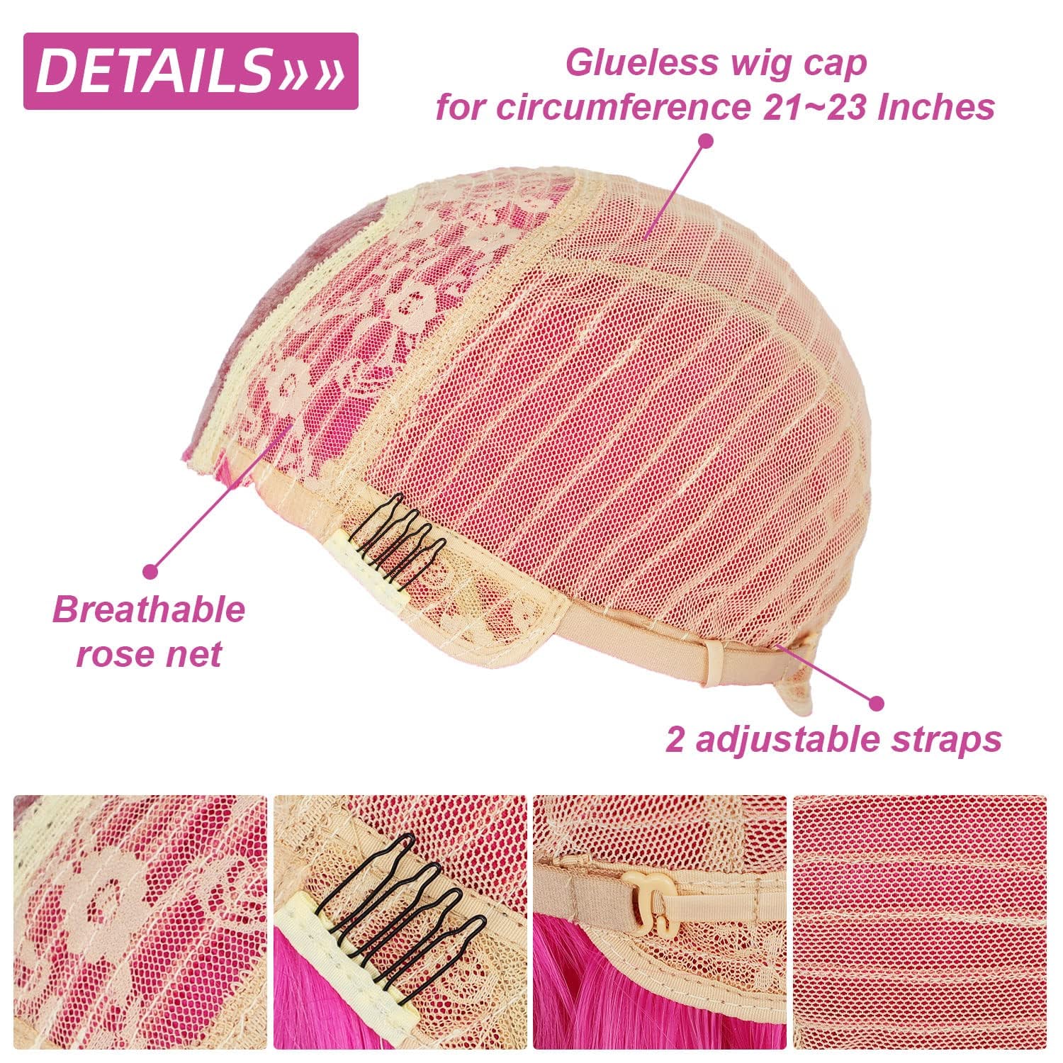 💖Adjustable cap: There are 2 adjustment straps inside the wig, which can be adjusted to 21~23 inches to suit different head sizes. Basic cap and open weft, the colorful bob wig 100% air-permeable hair net in the net can better ventilate and make you feel comfortable when wearing.