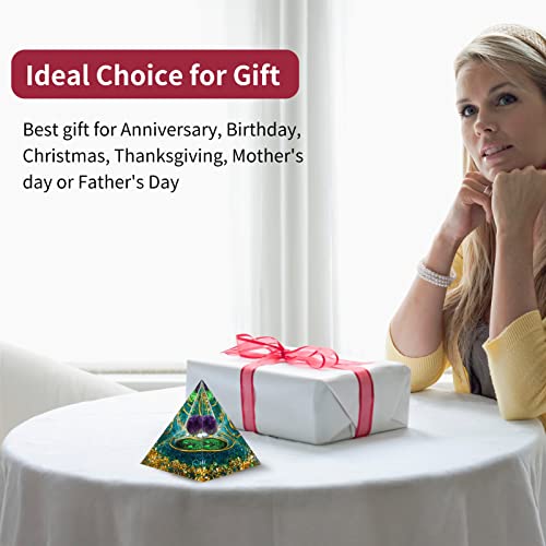 MXiiXM Orgone Pyramid for Positive Energy, Amethyst Crystal Ball Handmade Pyramid, Protection Crystals Energy Generator for Stress Reduce Healing Meditation Attract Wealth Lucky (Spiral Tree of Life)
