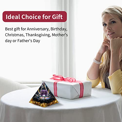 MXiiXM Orgone Pyramid for Positive Energy, Amethyst Crystal Ball Handmade Pyramid, Protection Crystals Energy Generator for Stress Reduce Healing Meditation Attract Wealth Lucky (Tree of Life)