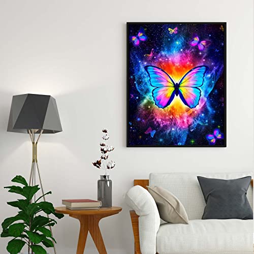 Rainbow Butterfly Starry Night Time Sky DIY 5D Diamond Painting Cross Stitch Full Round Diamond Embroidery Kits Home Decor 12 x 16 Inch