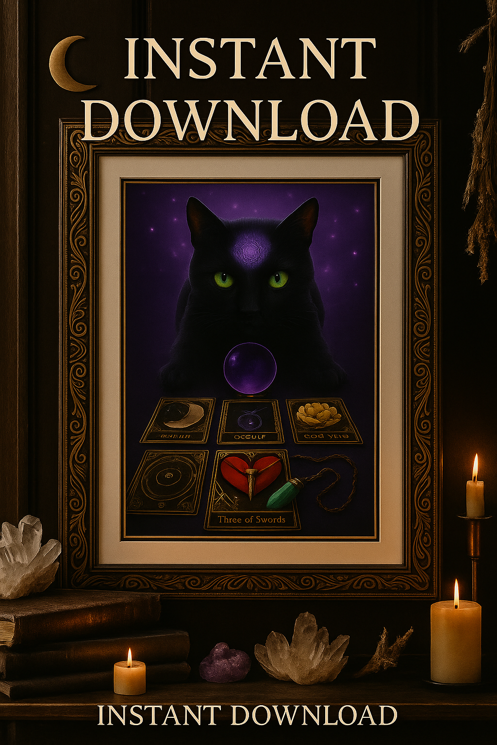 After payment, you can instantly download and use the file for printing, sharing, or digital display. No physical item will be shipped. Great for mystical décor lovers, tarot readers, or anyone enchanted by magical feline energy.
