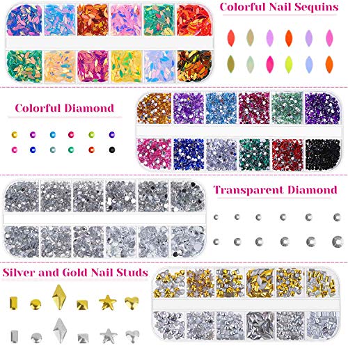 Nail Design Kit, Selizo Nail Art Tools Kit Include 8420pcs Nail Rhinestones Gems Crystals, Nail Brushes, 24 Pots Nail Foil Flakes for Nail Art Rhinestones Supplies and Decoration
