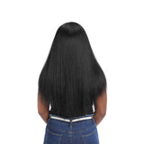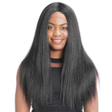 Fascinating Off Black Long Straight Yaki Hair Middle Part Synthetic Heat Friendly Natural Black Fluffy Goddess Wig Non Reflective, Not Shiny