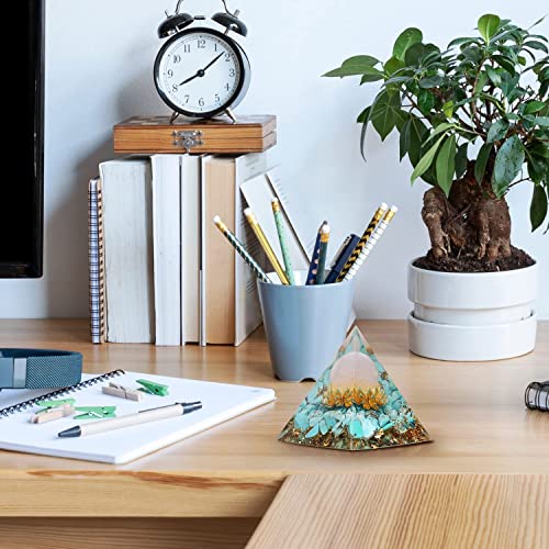 New Inspirational Crystal Pyramid Orgone Pyramids Flower of Life with Turquoise Energy Pyramid Generator for Protection Meditation Orgonite Pyramids