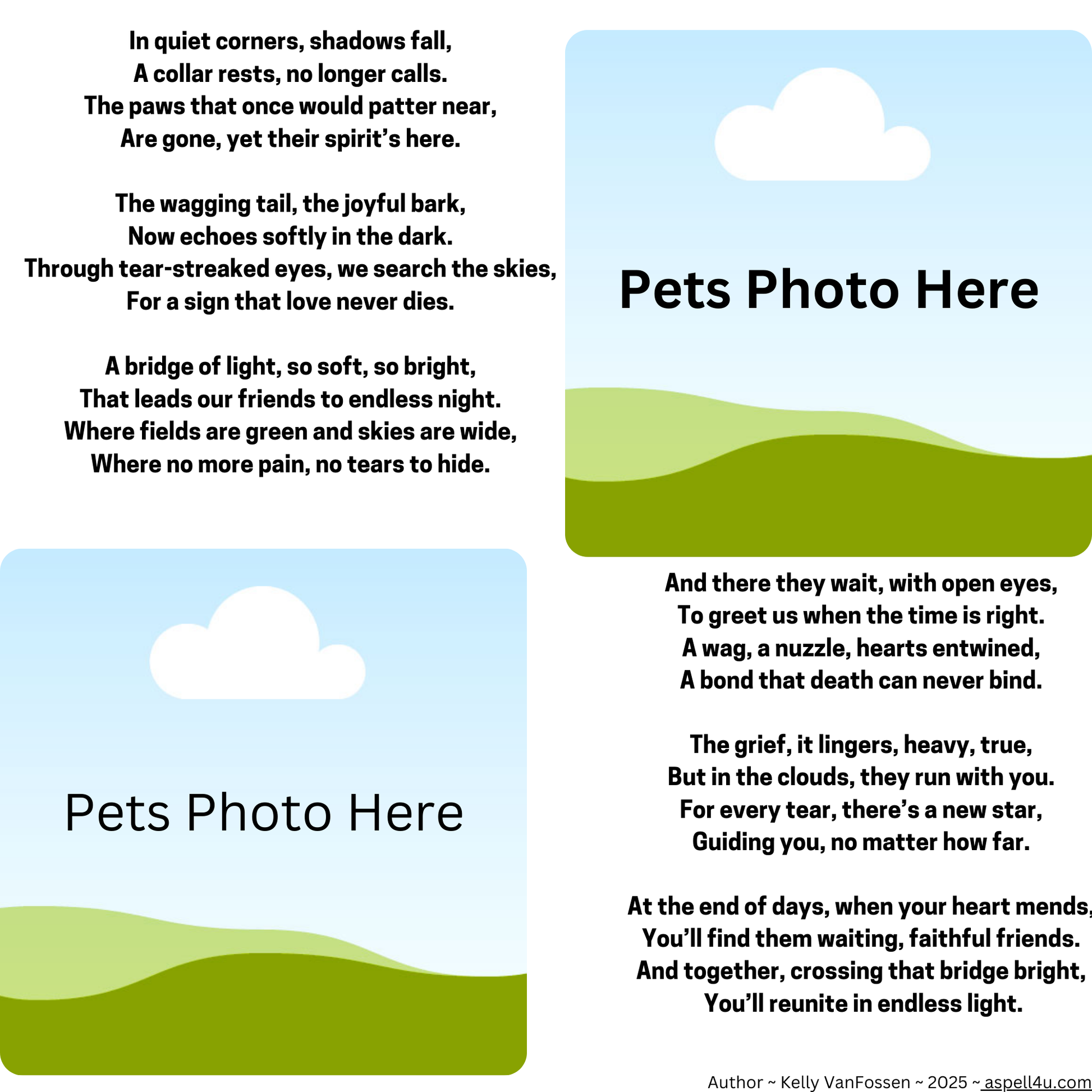 Keep the spirit of your furry friend alive with this touching memorial print. Download now to create a lasting tribute!