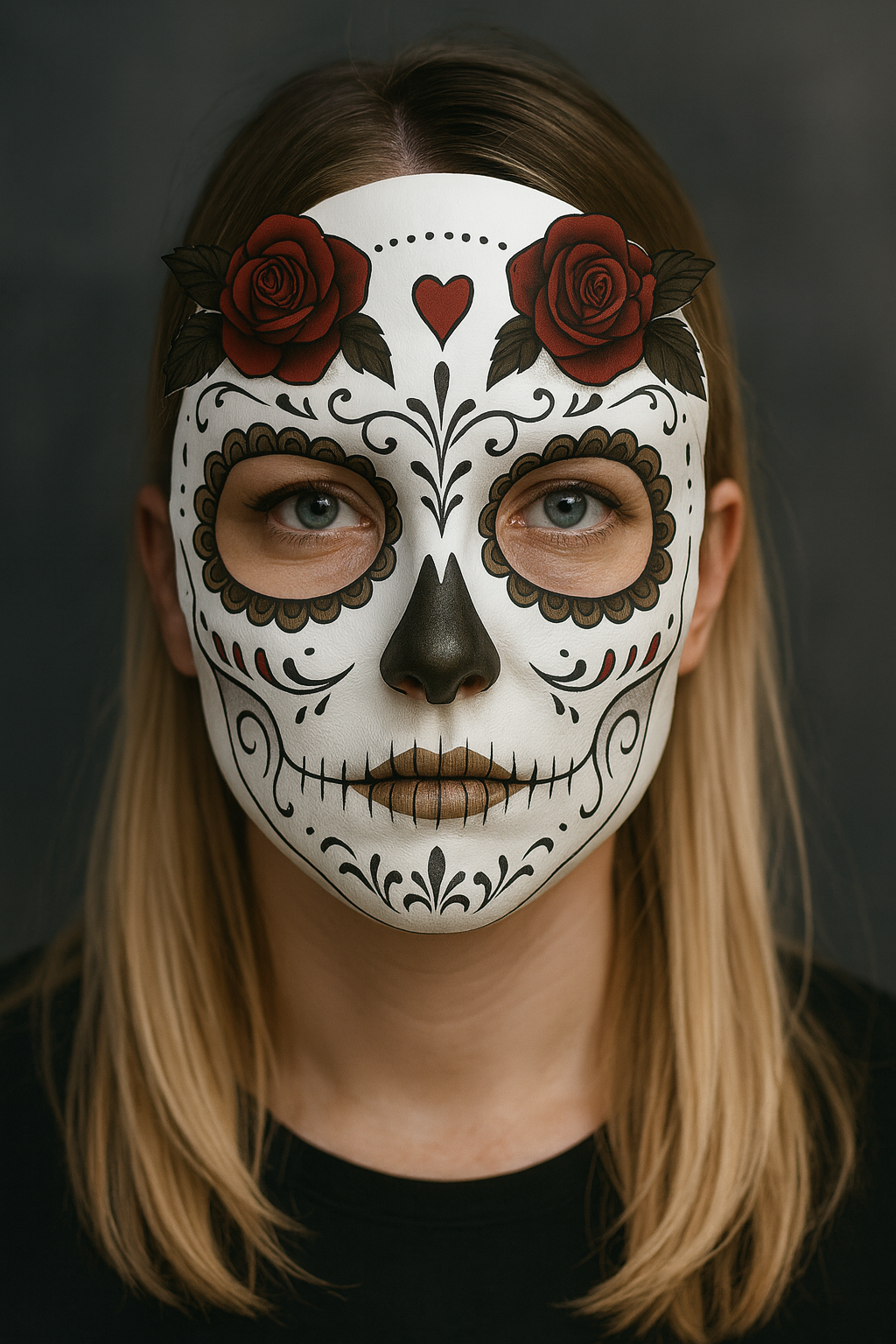 This design also makes a striking temporary tattoo for events, parties, or personal expression. If you're considering a permanent sugar skull tattoo, this artwork provides a powerful reference image to visualize the final result.