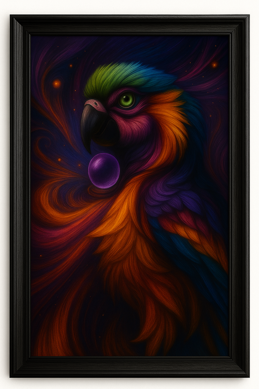 digital parrot png file, fantasy wall print, 300 dpi png download, mystical bird artwork, cosmic psychedelic image, rainbow feather design, crystal glowing orb, spiritual home decor, surreal animal print, boho vision board image, chakra inspired digital, printable altar art