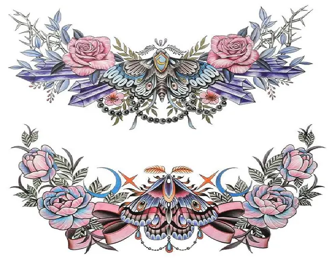 These designs are ideal for use as tattoo inspiration or temporary tattoos. If you’re considering permanent ink, this floral fantasy set offers artistic and meaningful body art. The shapes and floral flow are tailored for personal expression and look striking when tattooed on the lower abdomen, hips, or ribs.