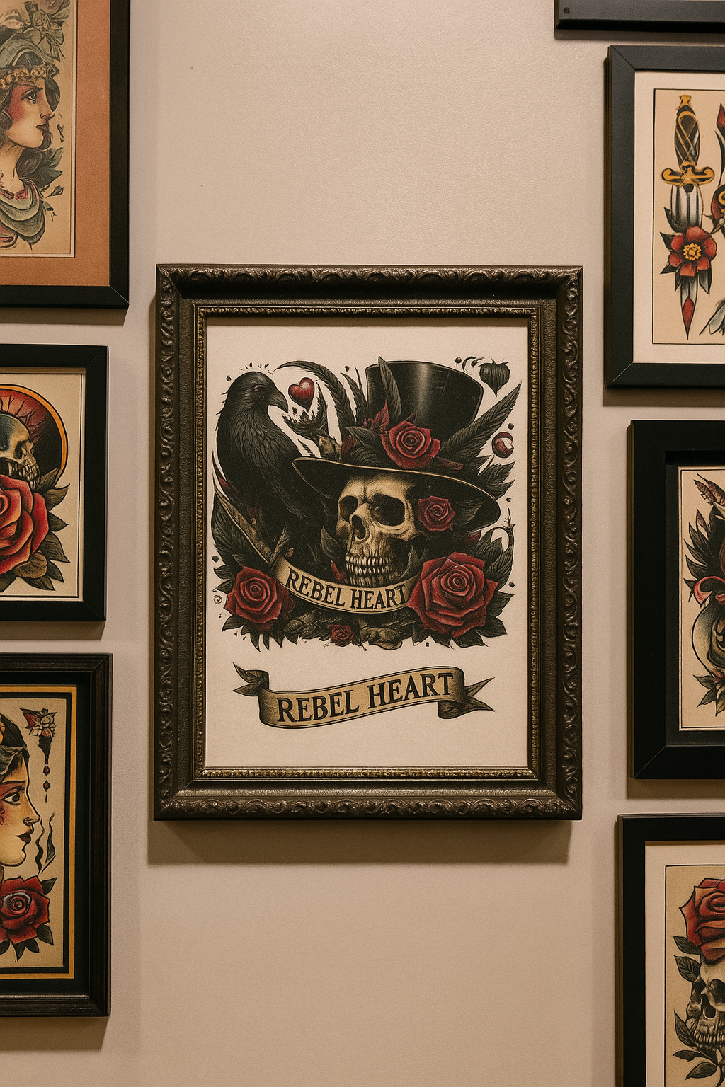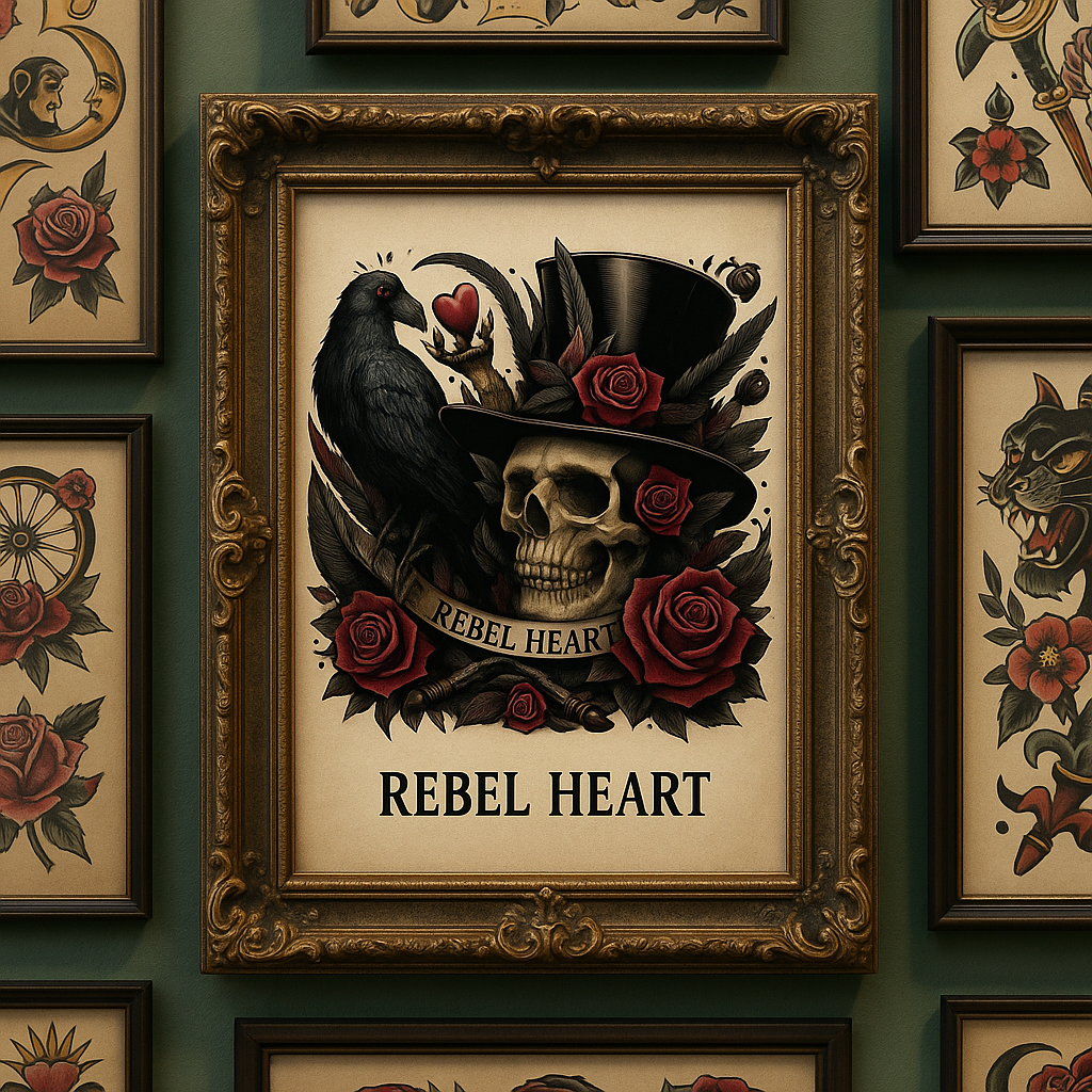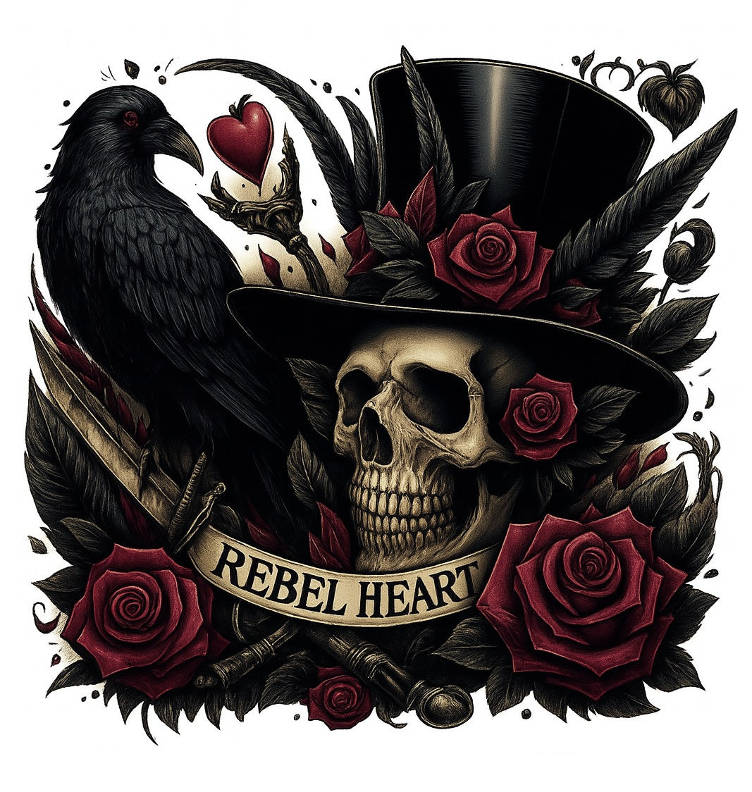 Rebel Heart Skull Raven Tattoo Gothic Art PNG JPG SVG Download for Apparel Wall Print Sublimation Decal Design Cricut Silhouette