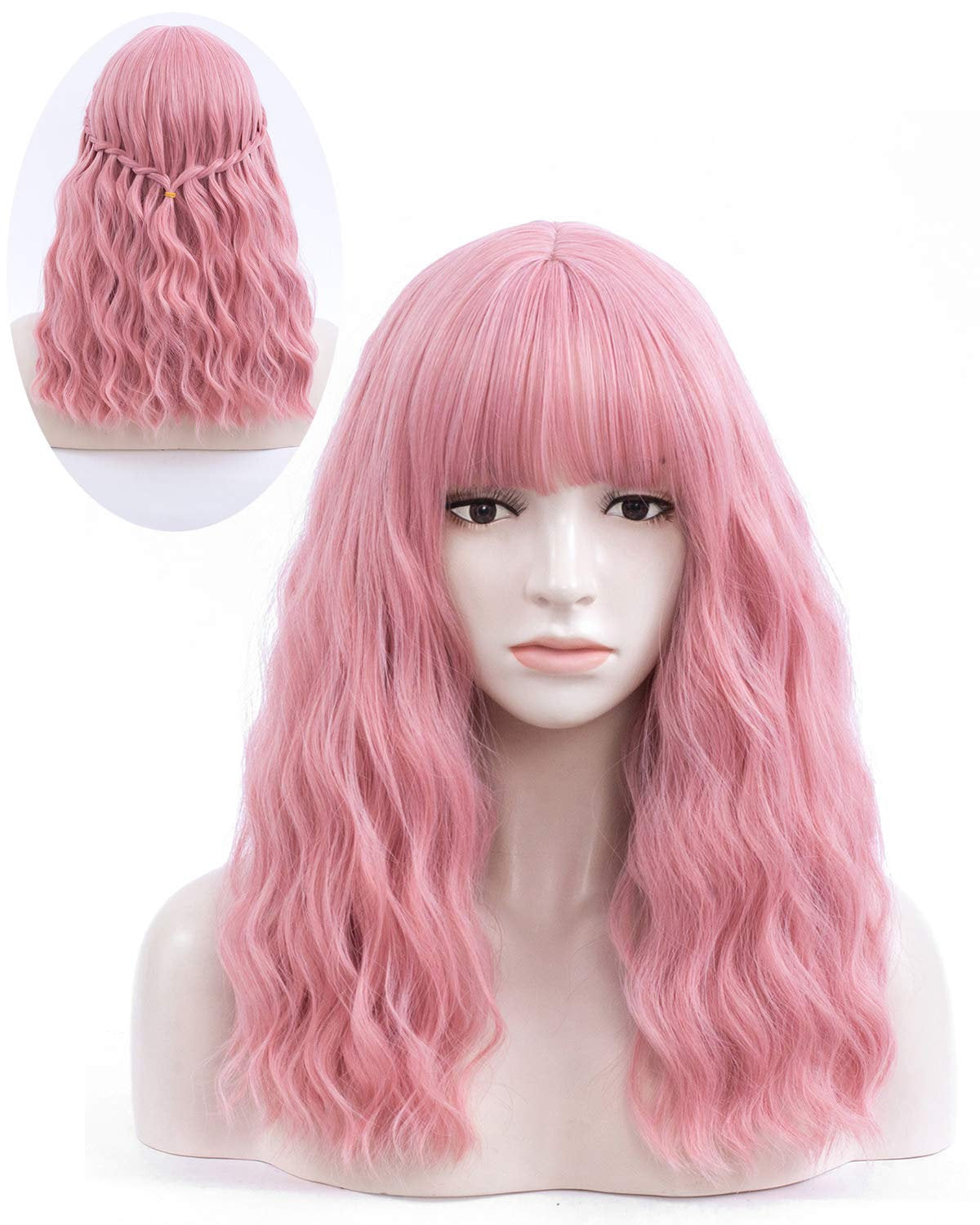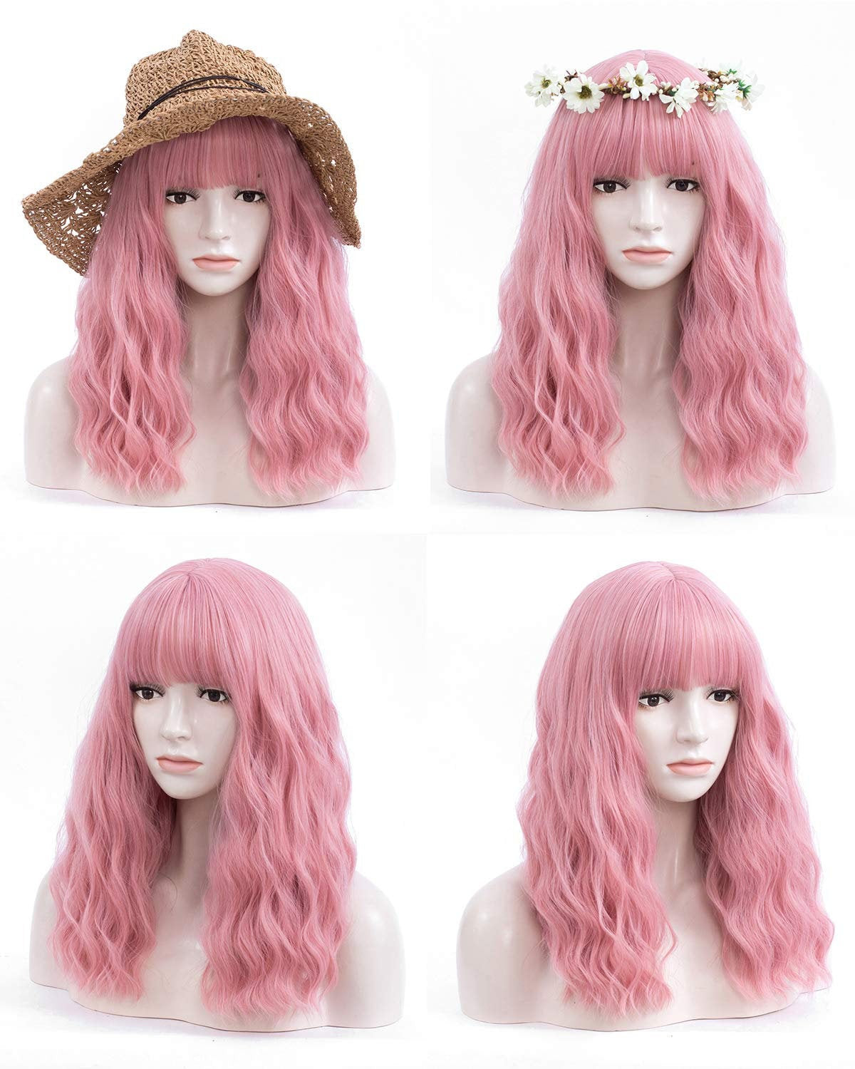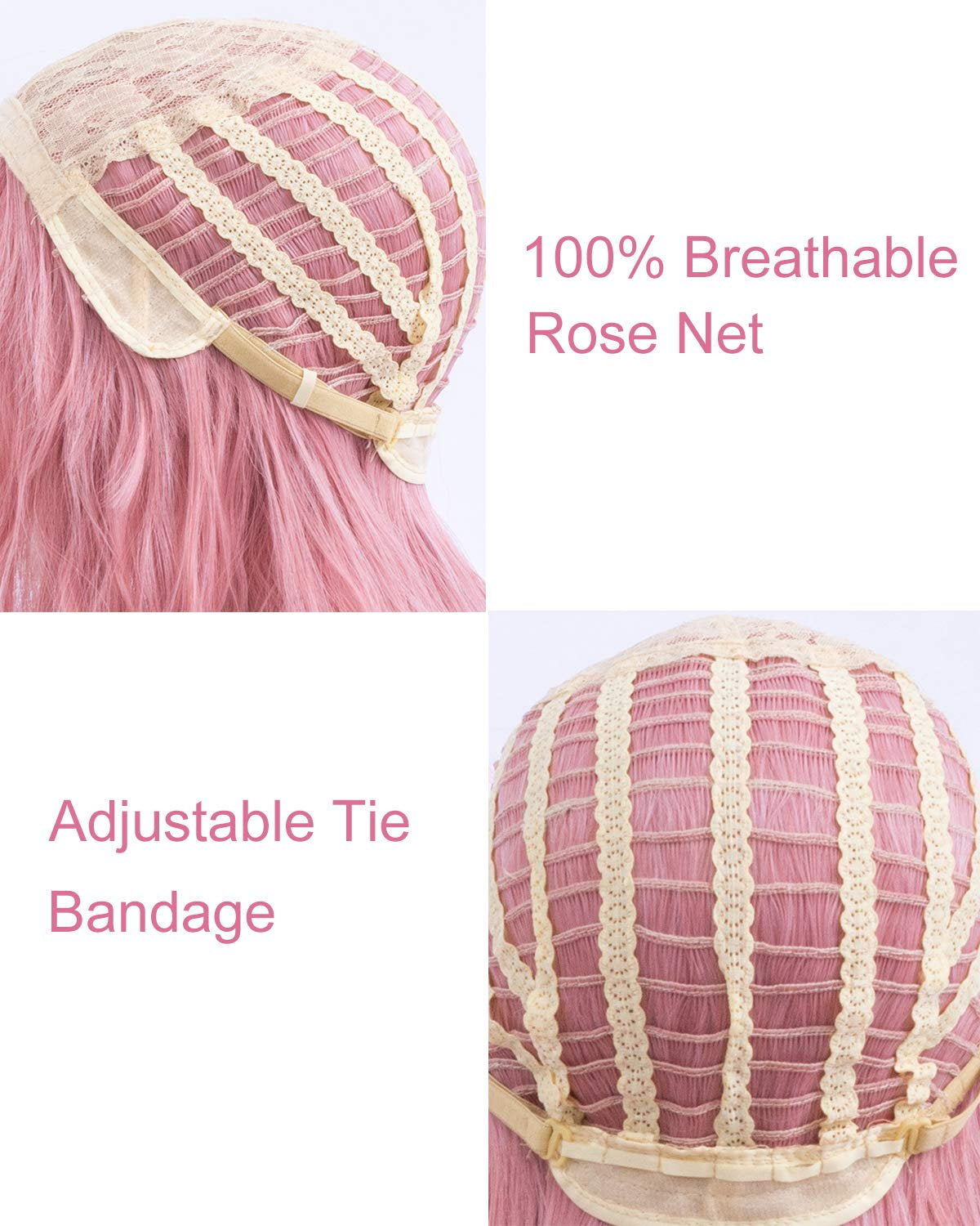 Rose Pink Shoulder Length 14" Full Synthetic Top Quality Heat Resistant Fiber Human Hair Feel Wig