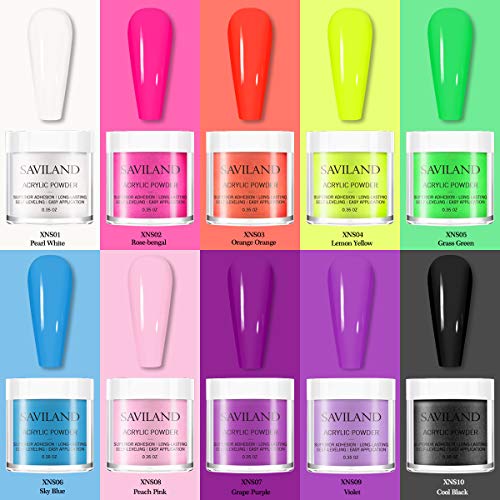 Saviland Acrylic Powder set - Neon Acrylic Nail Powder Set,10 Fluorescent Color Professional Polymer Kit Nail Extension for Nail Art