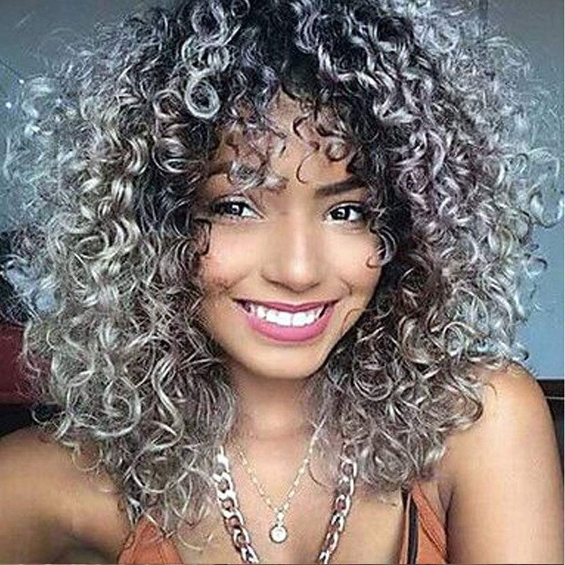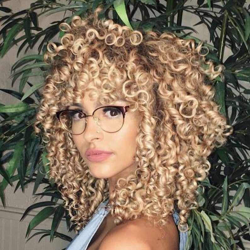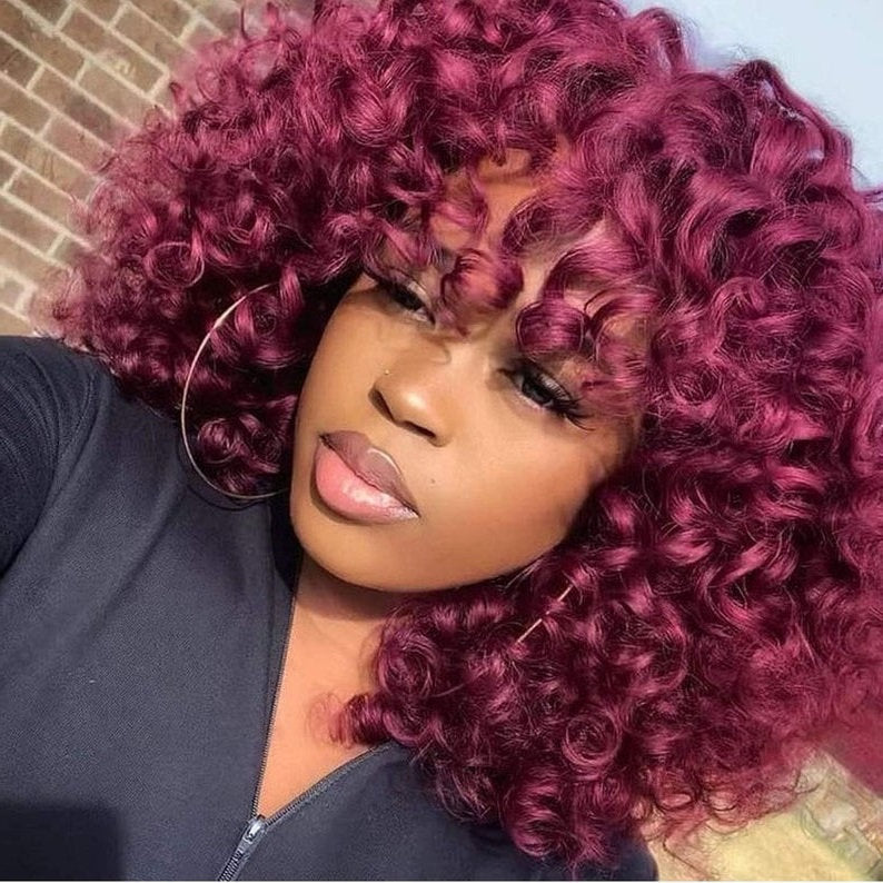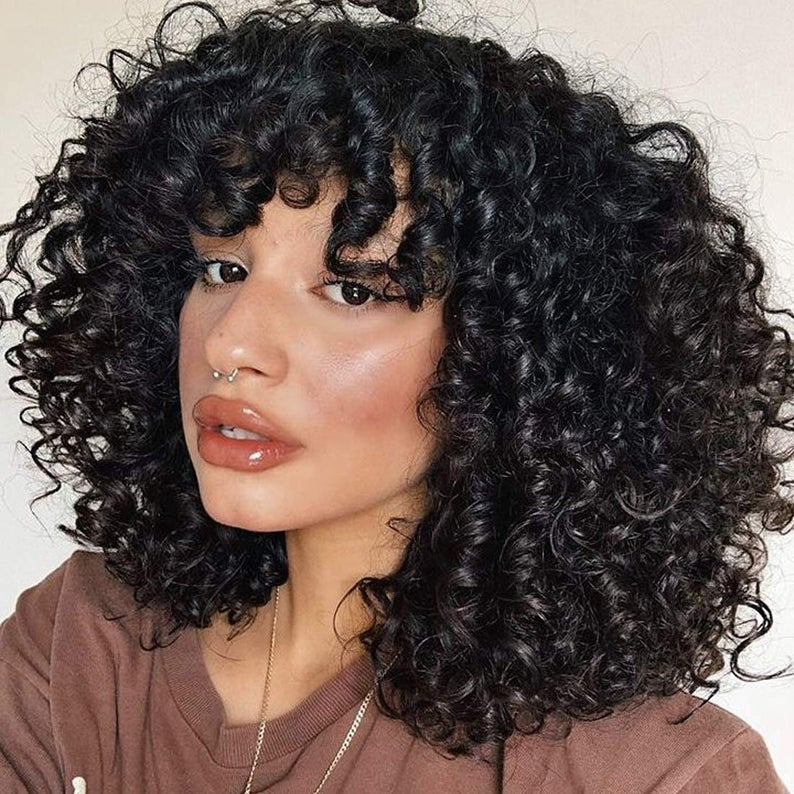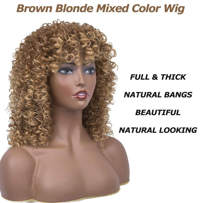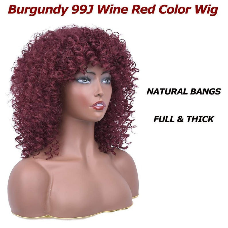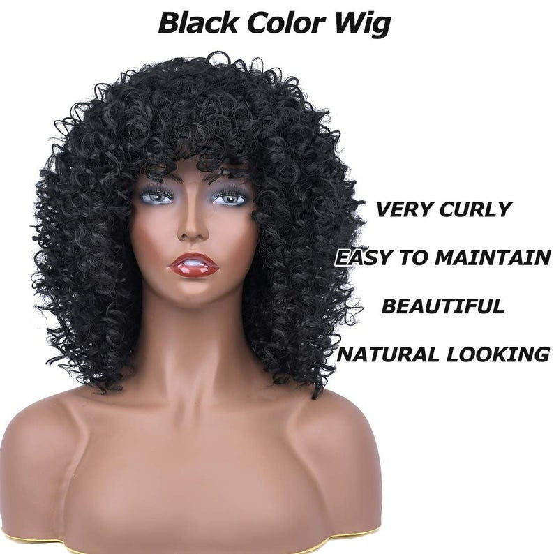 Professionally Design Human Hair Look and Feel Synthetic Short Curly Kinky Afro Wigs with Bangs