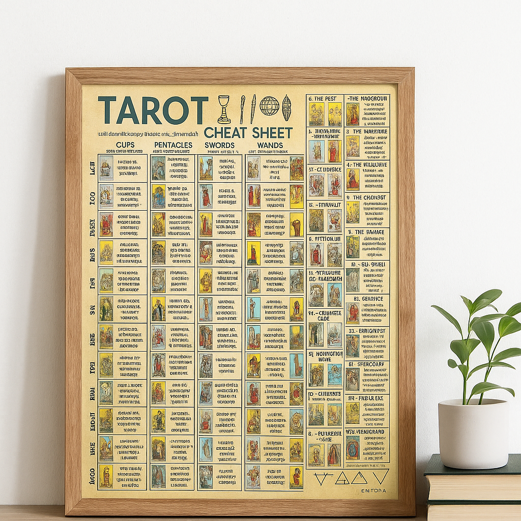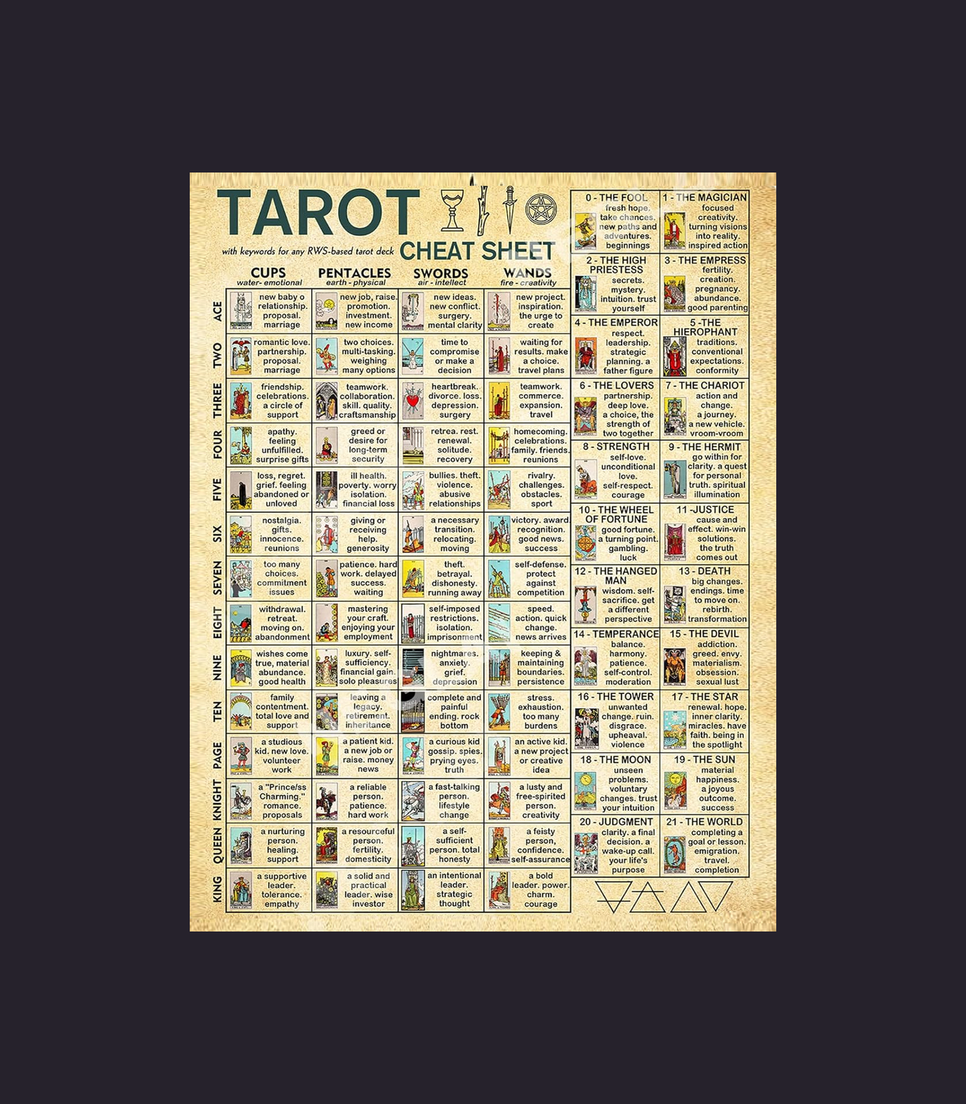 tarot wall print, wicca decor, cheat sheet tarot, gypsy printable, spiritual gift, witchy room art, hippie wall sign, occult chart poster, digital tarot file, instant download sheet, metaphysical art, boho tarot decor, sacred space print,