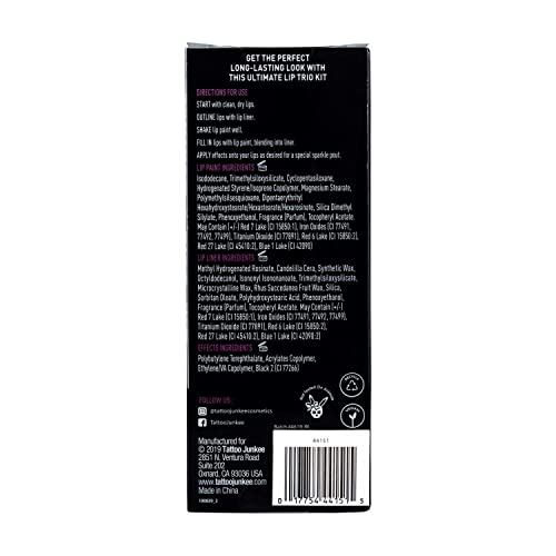 TATTOO JUNKEE Leather Lip Trio Lip Paint Kit, Includes Black Lip Liner & Matte Long-Wear Lip Paint + Coordinating Fine-Milled Opalescent Cosmetic Glitter