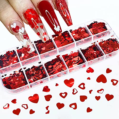❤️Glowing Colors: You will get 12 Grids Valentine's nail glitter sequins, each color come with a small plastic box protecting it from spilling out, easy for your every nail art design. Enough glitter powders can meet the needs of your DIY nail arts