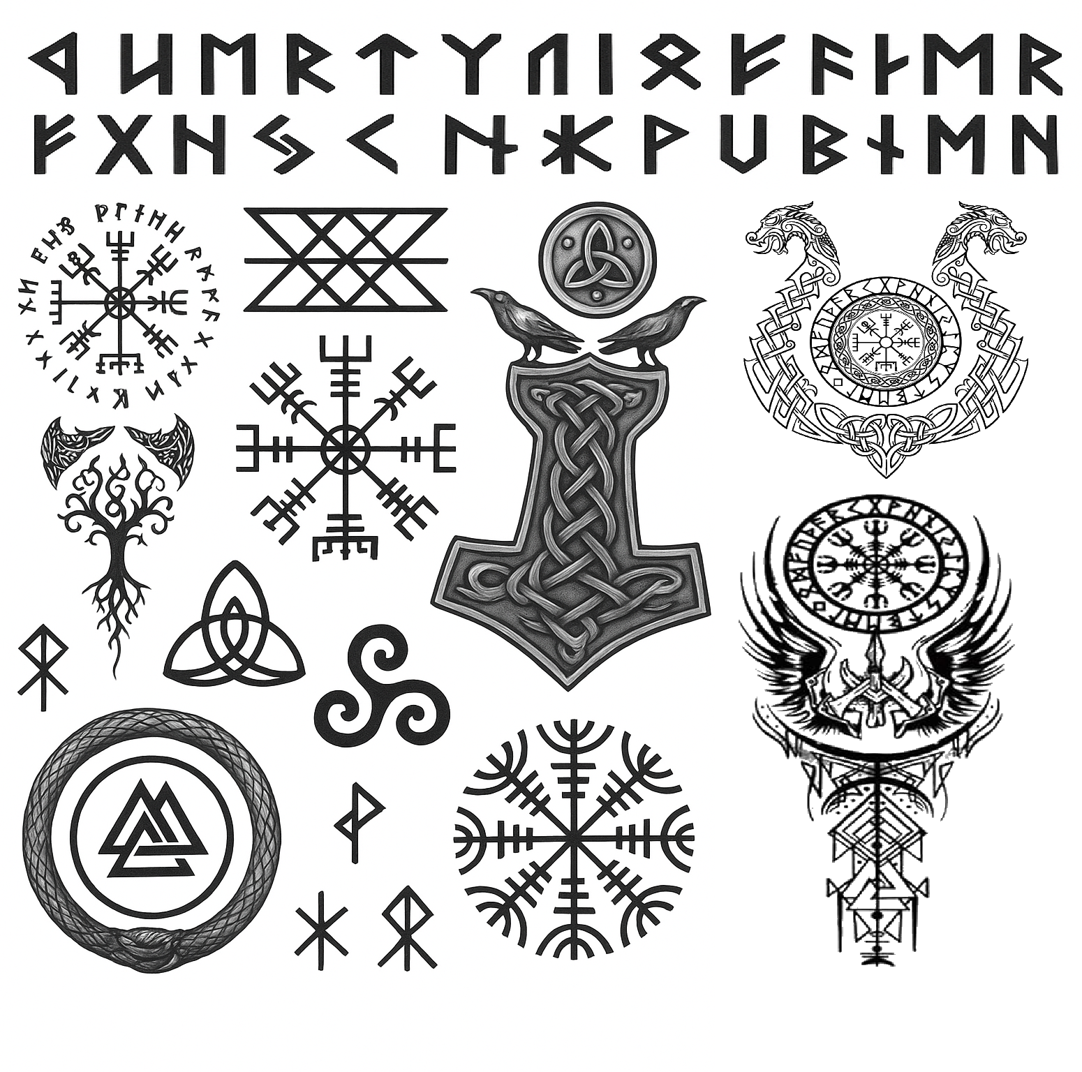 These Viking tattoo designs are also perfect for testing out placement and visual impact before committing to permanent ink. The symbolic value of the Vegvisir and Helm of Awe makes this set ideal for meaningful, bold tattoo inspiration.