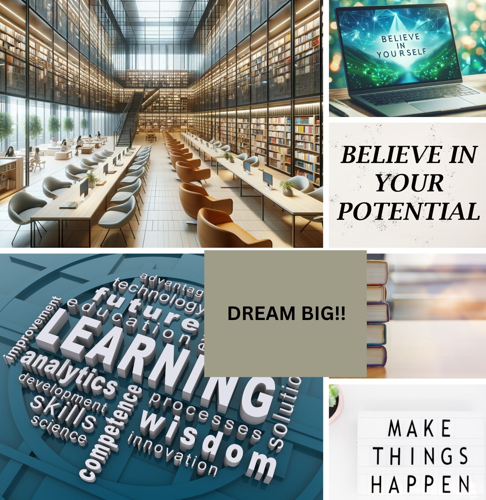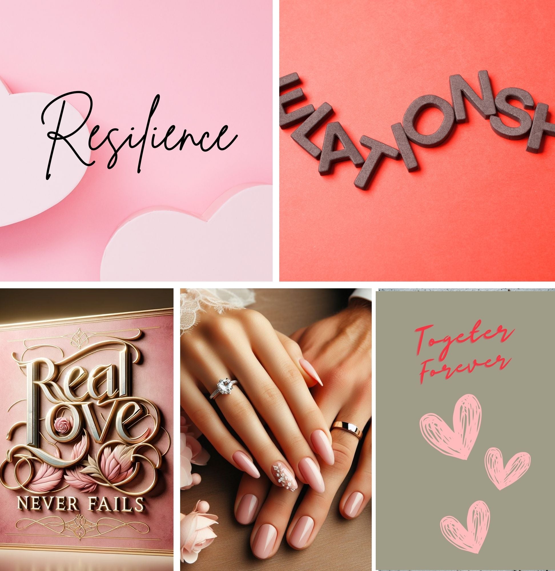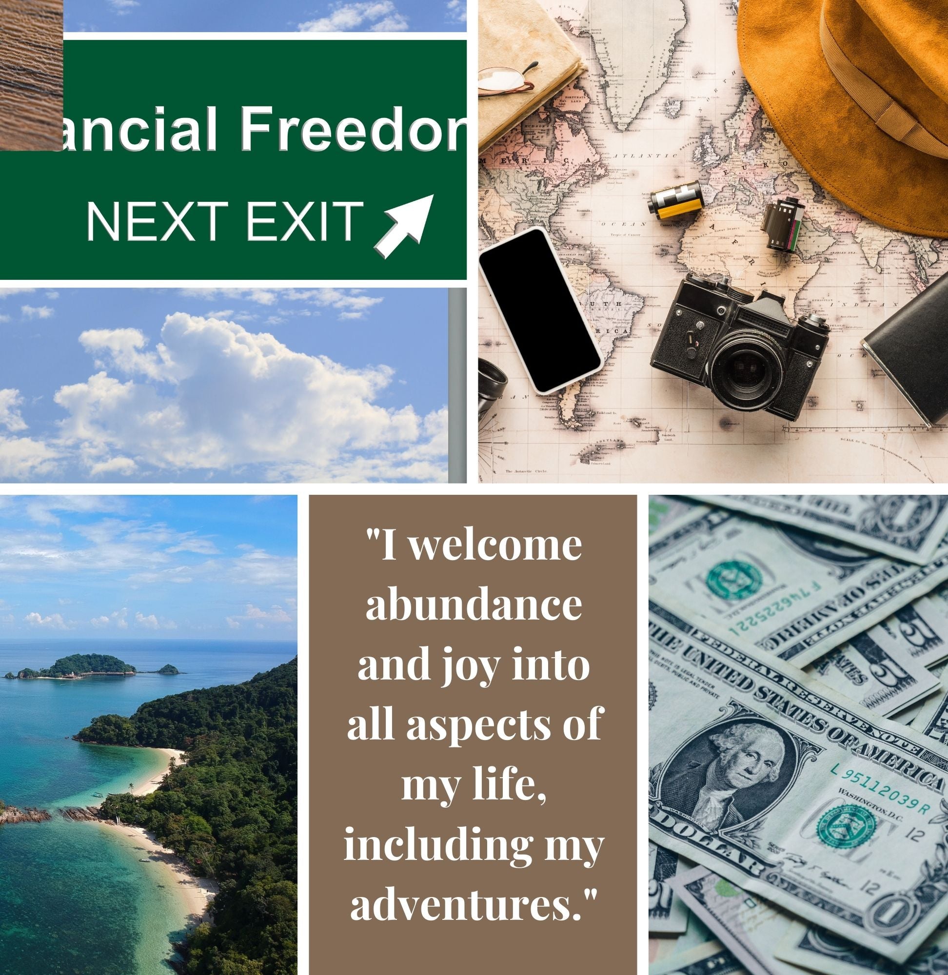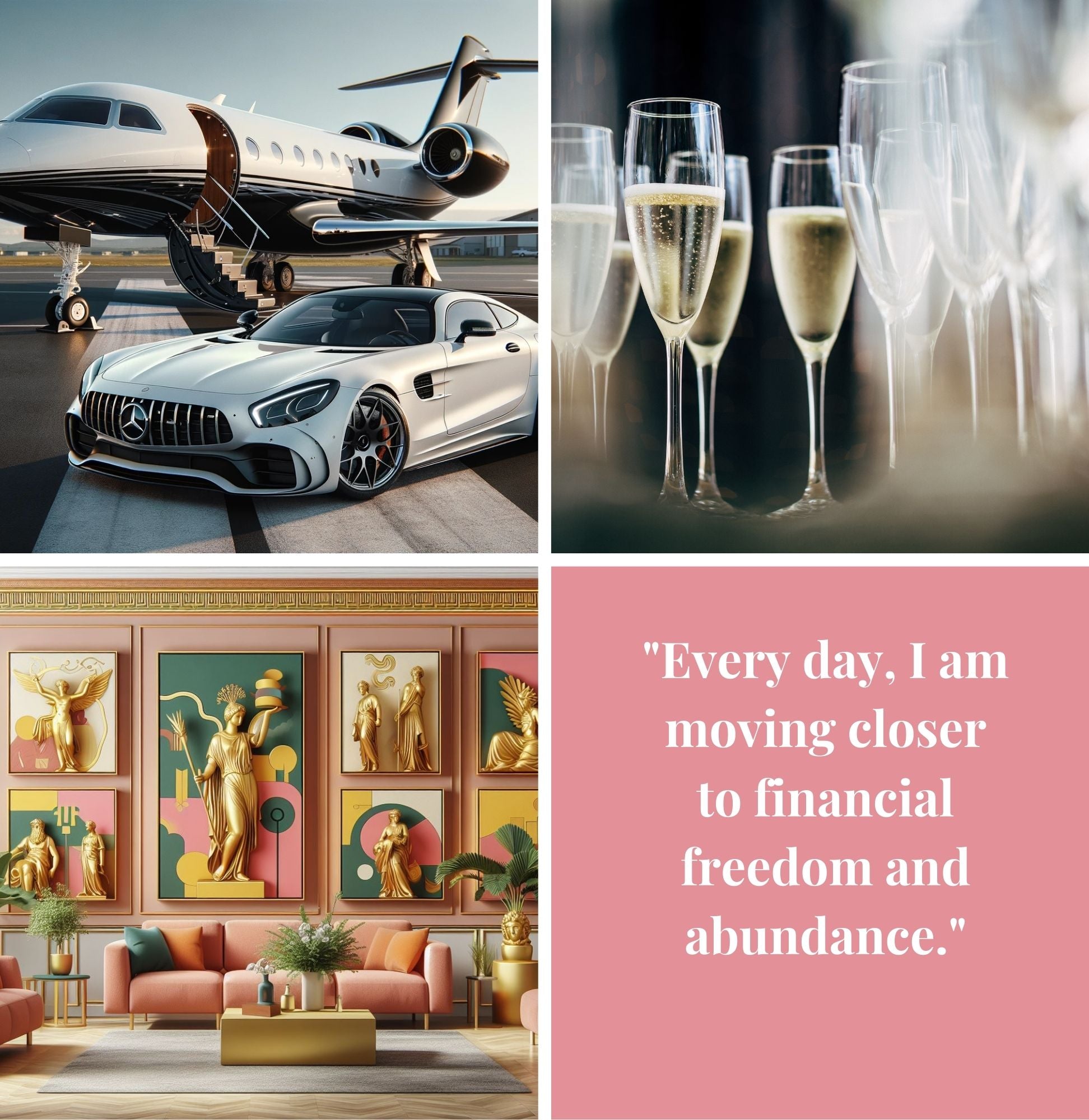 Vision board printable kit with over 300 aesthetic elements including motivational quotes, cut-and-paste images, and affirmations. Designed for manifestation, journaling, or goal setting. Includes digital files for download, ideal for printing or digital planning. No shipping. Created by aspell4u.com.