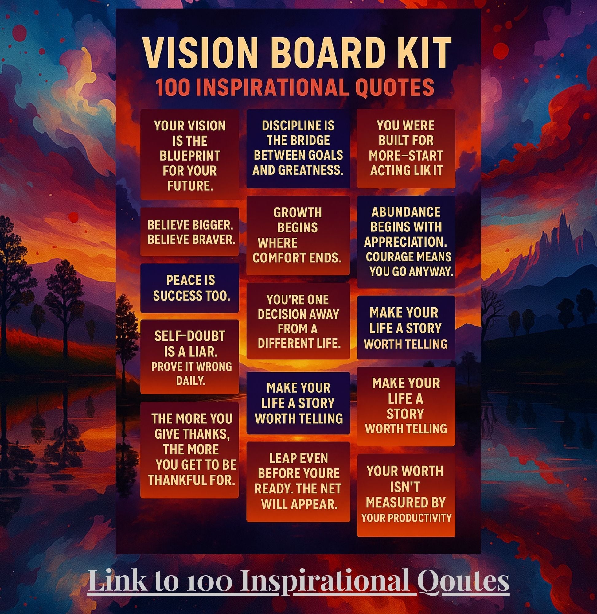 Design your dream life with the **Vision Board Printable Kit** by *- aspell4u.com*. This all-in-one **digital download** features over **300 aesthetic elements**, including empowering affirmations, curated lifestyle images, and motivational quotes designed to guide your intentions and help manifest your goals.